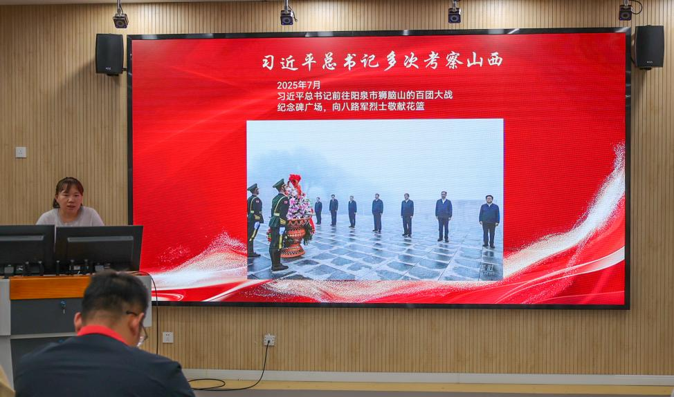 活动伊始,田艳强调,本次主题团日旨在引导动科学子把握时代脉搏、坚定理想信念,自觉将个人成长融入国家发展大局。随后,全体成员通过视频、图文等多种形式,回顾了习近平总书记近年来在山西考察的足迹。大家重点学习了2025年7月习近平总书记前往阳泉市向抗战烈士敬献花篮并参观百团大战纪念馆的事迹。同学们深刻认识到,这一举动不仅是对革命先烈的深切缅怀,更是对伟大抗战精神的弘扬与传承。