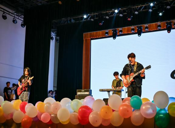 万有引力音乐社以《怦然“新”动,“音”你不同》为主题倾情献唱。他们深情演绎《爱人错过》,又以活力四射的《你要跳舞吗》点燃全场,跳跃的节奏与青春的声线交织,引发阵阵欢呼。