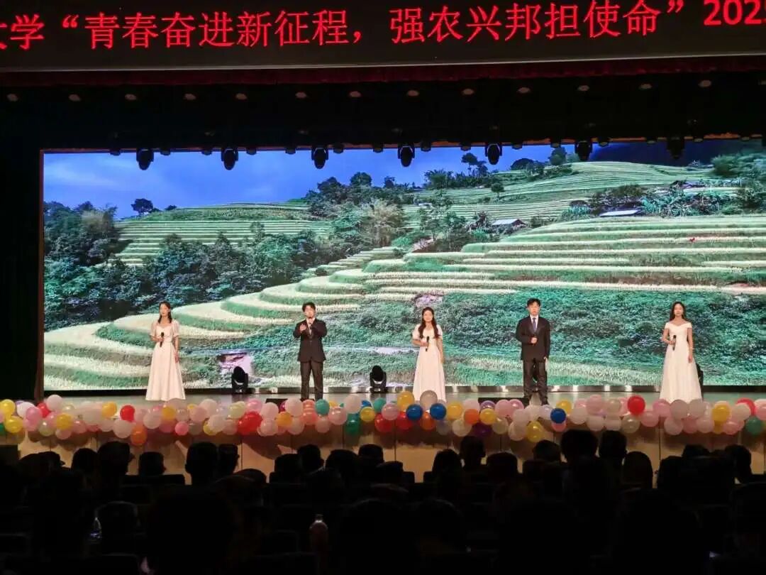 9月20日,植物保护学院、动物科学学院、公共管理学院于千人报告厅联合举行“青春奋进新征程,强农兴邦担使命”2025年迎新文艺演出。学生工作部部长原广华、副部长姜红军、植物保护学院党委书记程三宝、动物科学学院党委副书记薛轶娟莅临现场,各学院团干辅导员以及全体大一新生到场观看。