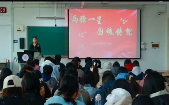 宣讲过程中,“赤子星芒”志愿宣讲团的志愿者以详实的史料和生动的案例,系统回顾了我国“两弹一星”事业的辉煌历程,阐述了其在维护国家安全、奠定大国地位以及推动科技进步方面的重要意义,并深入解读了“两弹一星”精神的核心内涵与时代价值。活动特别设置了互动问答环节,同学们踊跃参与,积极交流,现场气氛庄重而热烈,进一步加深了大家对历史的认知与精神的认同。