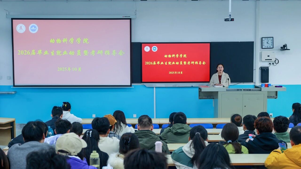 10月23日,动物科学学院于5号楼301教室召开2026届毕业生就业动员暨考研指导会。党委副书记薛轶娟、分团委副书记杜晓岩、贺鹏宇出席此次会议,全体2026届毕业生参加本次会议。