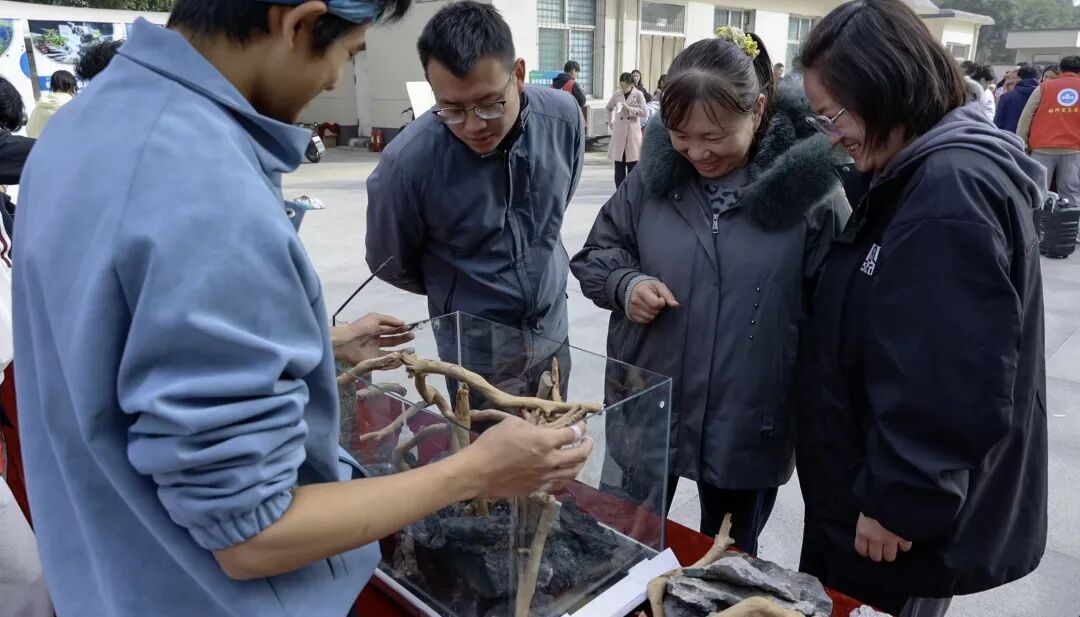 本次展览共设置四大板块:畜产品加工区、动科技能大赛展示区、水族箱造景展示区和标本展示区。在畜产品加工区,同学们品尝了牛肉、火腿、卤蛋、牛奶、酸奶、蜂蜜等多种优质产品,并深入了解了相关生产工艺与质量安全知识,进一步增强了对专业的认同感。动科技能大赛展示区现场呈现了牧场规划、饲料鉴别、鱼粉掺假鉴定、鸡的精液采集与输精、猪的背膘与眼肌测定等比赛项目,充分展现了动科学子扎实的专业功底和出色的实践能力。水族箱造景展示区以富有创意的生态布局吸引了众多师生驻足观赏,体现了水产养殖与生态美学的有机融合。标本展示区则通过栩栩如生的动物标本,让同学们得以近距离观察动物形态结构,有效促进了课堂理论与实际观察的结合。