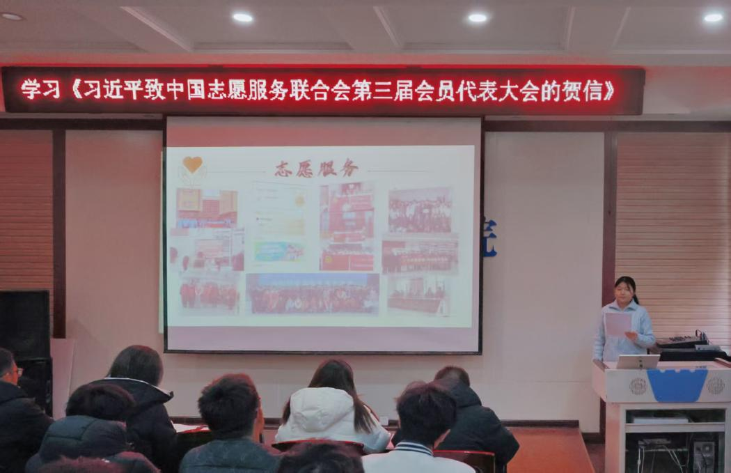 12月5日,值此国际志愿者日之际,我院于大会议室组织开展了专题学习活动,深入学习领会《习近平致中国志愿服务联合会第三届会员代表大会的贺信》精神。活动中,学生代表房雯煜以“微光成炬,志愿同行,在奉献中书写青春”为主题,进行了主旨分享。分团委老师及全体班团学干部共同参与了本次学习。