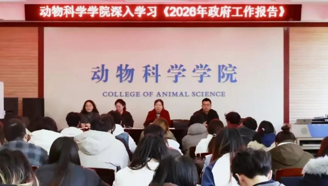 3月11日,动物科学学院在动科楼大会议室深入学习《2026年政府工作报告》。会议由分团委副书记贺鹏宇主持,分团委全体老师、各班学生干部参加会议。